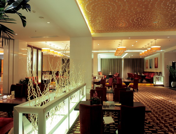 星城珠海大酒店位于珠海市吉大区,为烂尾楼工程,在新加坡投资方接手之后委托我方为其进行室内设计及外观、雨棚等的整体设计。同时,明确表示希望少花钱多办事,经过整合分析及同业主多次沟通之后,我们为酒店的设计定位为时尚型商务酒店,删减经营不必需功能空间,迎合市场进行功能再定位,打破固定模式,在平面布局上,模糊中、西餐饮空间及会议、宴会空间概念,从而连动出空间立面效果的别具一格、新颖别致。在空间装饰效果上,新增加的旋转楼梯及大堂中空都是利用其烂尾楼的限制营造而出,不过也正因为制限而独特。在材料选用上,尽量采用廉价而环保的材料,如微晶石,灰镜、玻璃等材料,营造出生动别样的功能空间,同时,利用活动家私、大型灯具及工艺品的曲线造型及亮丽的色彩搭配,使空间整体温馨、浪漫。最终业主的评价为“用三星级酒店的钱,打造出了五星级酒店的效果”。